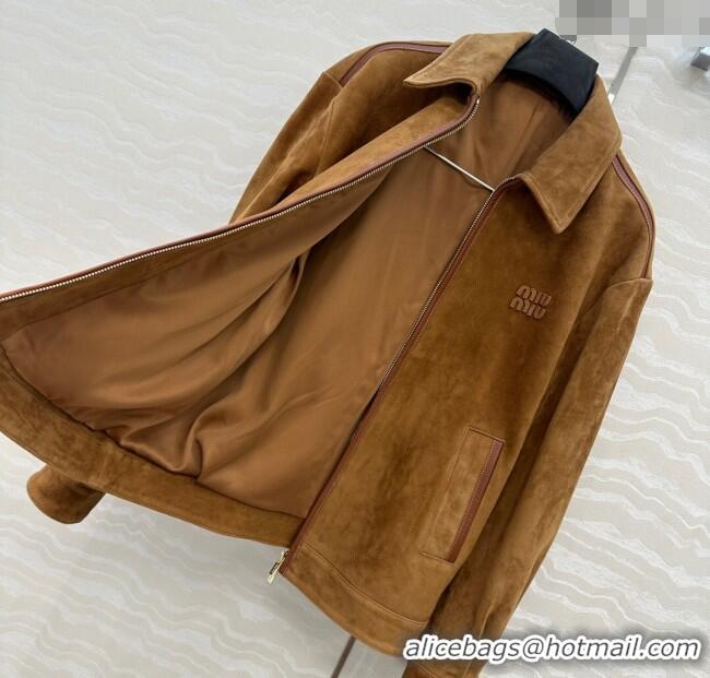 Reasonable Price Miu Miu Sheepskin Suede Jacket 0814 Brown 2025