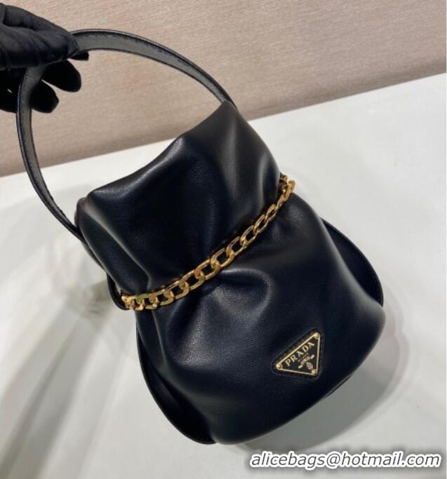 > Prada Handbags > Prada 2025 Bags > Luxury Cheap Prada Petit Sac Noir mini nappa leather bucket bag 1BE088 Black 2025