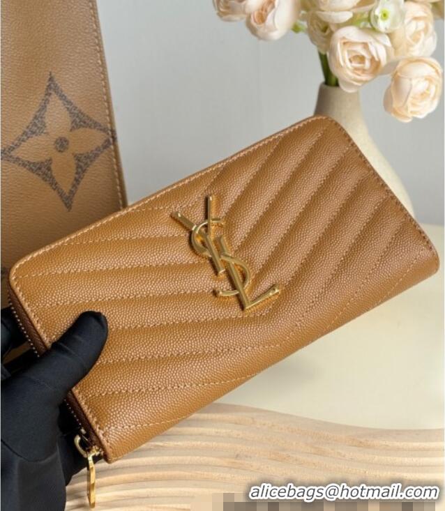 Reasonable Price Saint Laurent Cassandre Matelasse Zip Around Wallet in Grained Leather 358094 Brown 2025