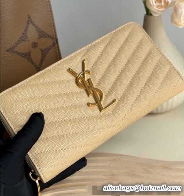 Trendy Design Saint Laurent Cassandre Matelasse Zip Around Wallet in Grained Leather 358094 Beige 2025