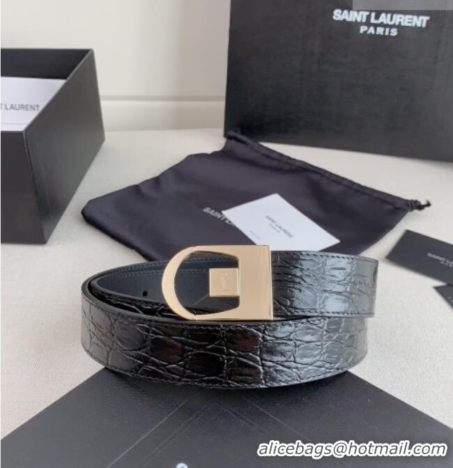 Grade Quality Saint Laurent Reversible Crocodile Embossed Leather Belt 3cm 0617 Black/Gold 2025