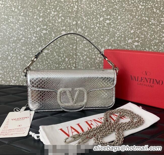 Reasonable Price Valentino Loco Medium Shoulder Bag in Snakeskin Embossed Leather with Strass VLTN6030 Silver 2024
