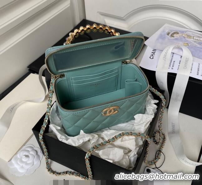 Your Position: Home > Chanel Handbag > Chanel 2024 Bags > Shop Best Chanel Shiny Crumpled Lambskin Clutch with Chain and Pearls Top Handle AP3804 Green 2024
