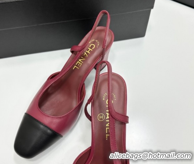 Super Chanel Calfskin Leather Slingbacks Pump 6.5cm G31318 Burgundy/Black 2026