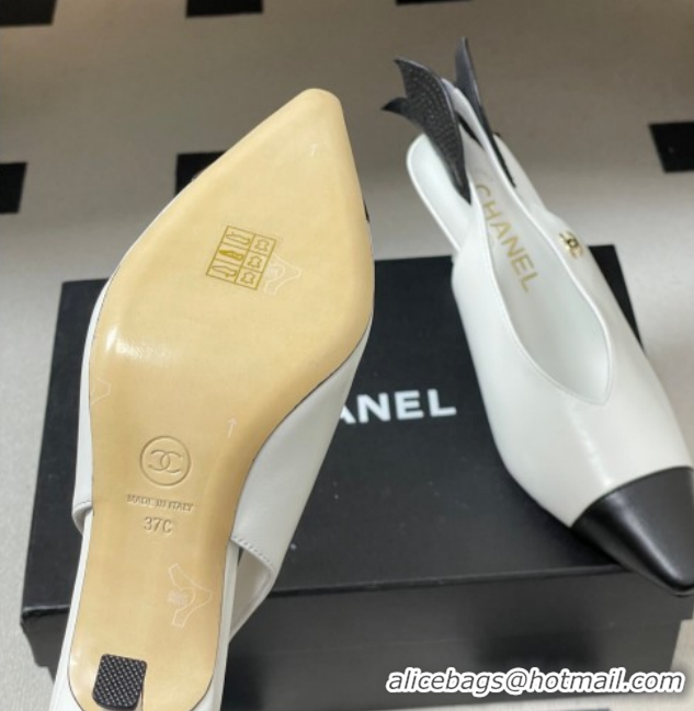 Luxury Chanel Lambskin Leather Slingbacks Pump 7.5cm CH122407 White 2026