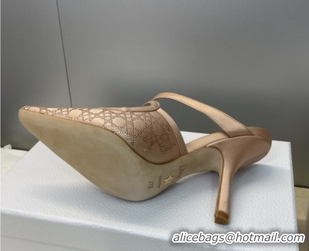 Sophisticated Dior Capture Heeled Mules 9.5cm Satin with Strass Cannage Motif Nude DR121606 1216114