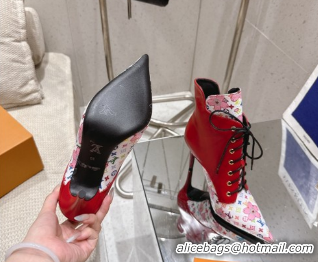 Your Position: Home > Shoes Plaza > Louis Vuitton Shoes > Buy Luxury Louis Vuitton LV x TM Monogram Canvas and Leather Laced-up Ankle Boots 9cm Red LV102203 1022019