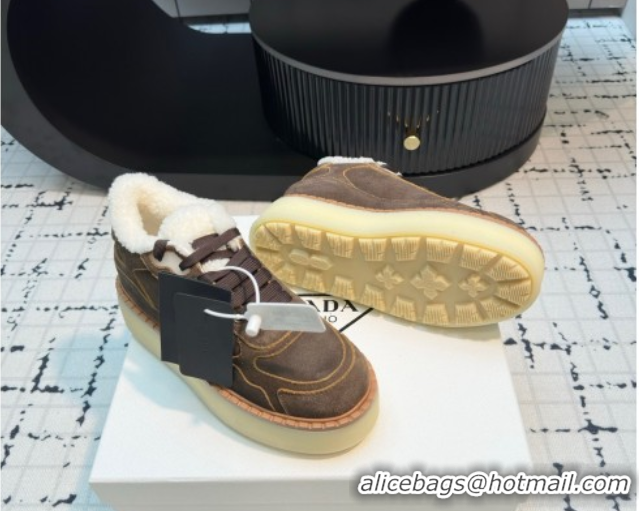 > Shoes Plaza > Prada Shoes > Best Price Prada Suede and Wool Platform Mid-top Sneakers 5cm Dark Brown 2025 1T725N 1027094