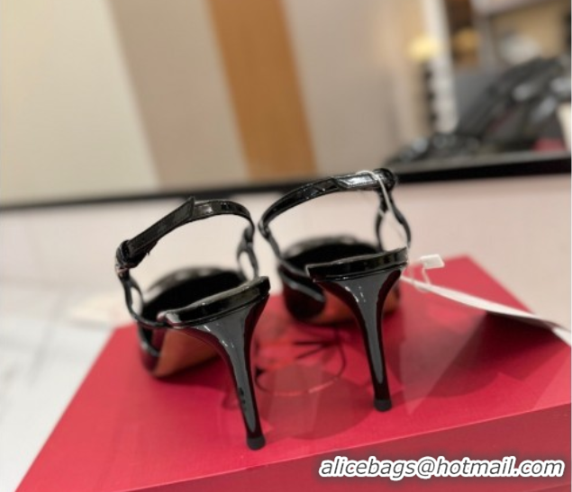 Shop Cheap Valentino VLogo Signature Slingback Pumps 8cm in Patent Calfskin All Black VA082111