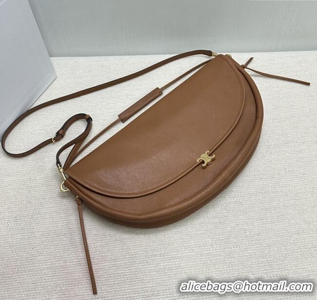 Shop Discount Celine Halfmoon Soft Triomphe Bag in Supple Shiny Lambskin 124142 Tan 2025