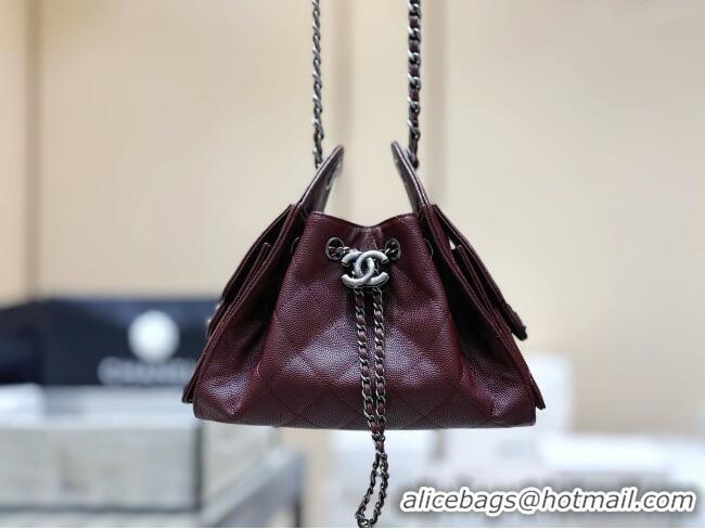 Shop Discount Chanel 25 Mini Handbag in Grained Calfskin AS5631 Burgundy/Silver 2026 Top Quality