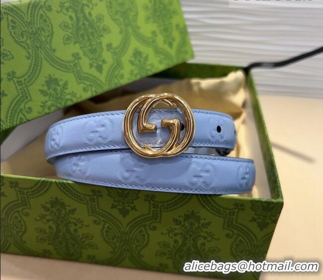 Well Crafted Gucci GG Embossed Leather Belt 2cm with Interlocking G Buckle 1127 Blue/Gold 2024