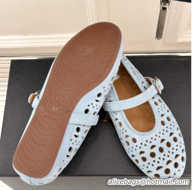 > Shoes Plaza > Alaia Shoes > Shop Duplicate Alaia Ballet Flat in Openwork Suede Light Blue 50224046