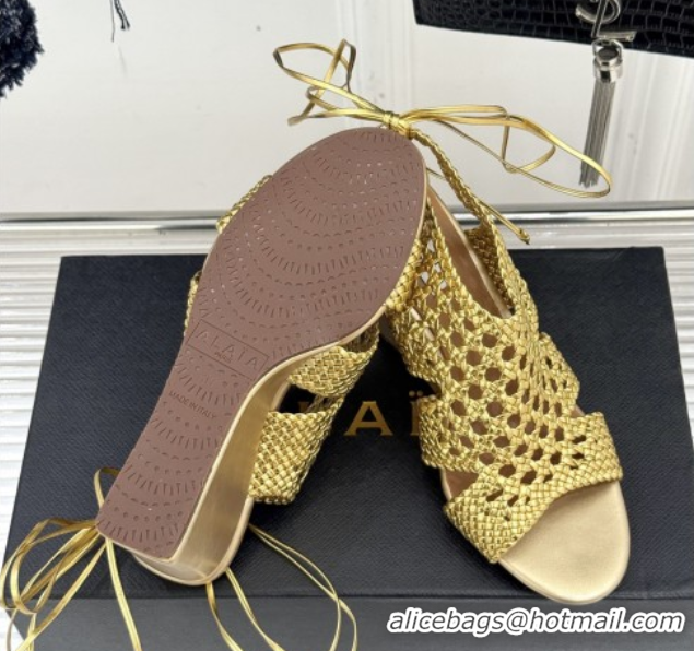 Best Grade Alaia Weave Leather Wedge Sandals 10.5cm Heel A091601 Gold 091601