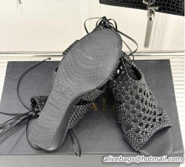 Low Price Alaia Weave Leather Wedge Sandals 10.5cm Heel A091603 Black
