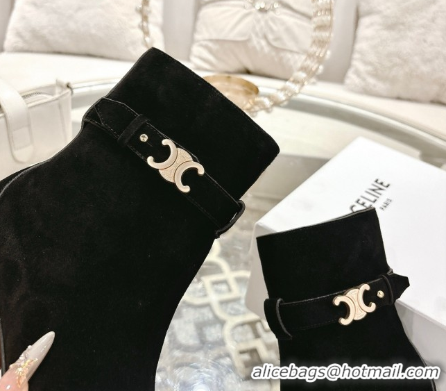 Your Position: Home > Shoes Plaza > Celine Shoes > Shop Duplicate Celine Garance Heel Ankle Boots 6cm in Suede with Triomphe Logo Strap Black 1024051