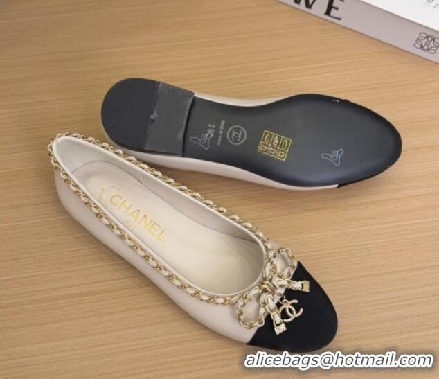 Stylish Chanel Calfskin Ballet Flats with Chain Bow White 2025 CH041605