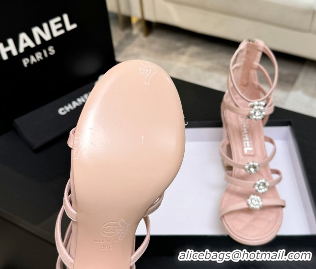 > Shoes Plaza > Chanel Shoes > Low Price Chanel Calfskin Heel Strap Sandals with Pearl Bloom Gold CH0307 Pink 2026