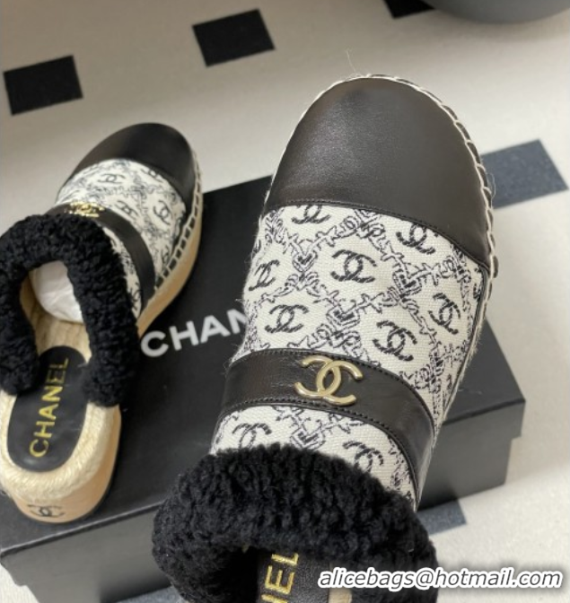Best Product Chanel Lambskin & Fabric Mules with Shearling CH102002 Black