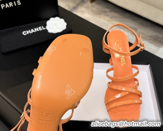 Luxurious Chanel Patent Calfskin Leather Heel Sandals 9cm G46901 Orange 2026