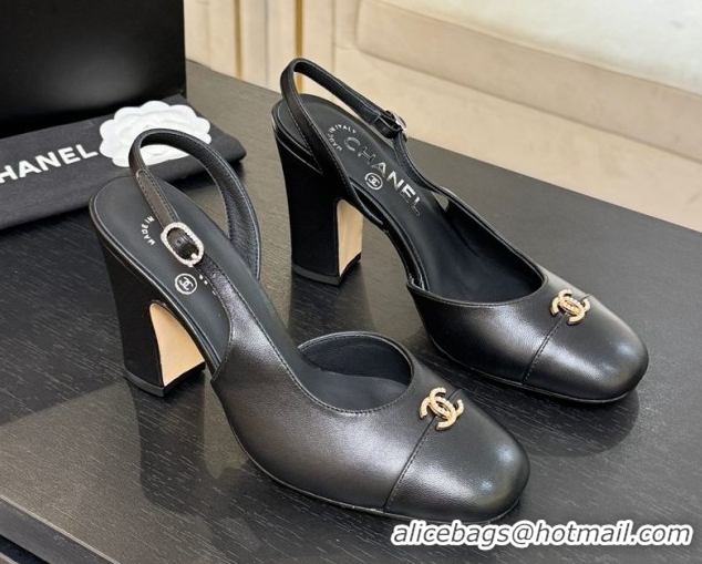 Unique Discount Chanel Lambskin and Calfskin Leather Slingback Pumps 9cm with Strass CC Black 2025 CH110301