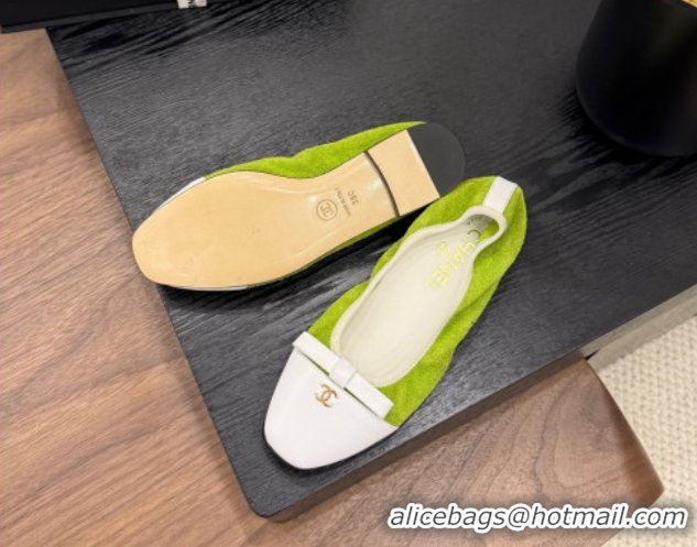 Shop Duplicate Chanel Suede & Calfskin Ballet Flats with Bow Green 2025 CH090202