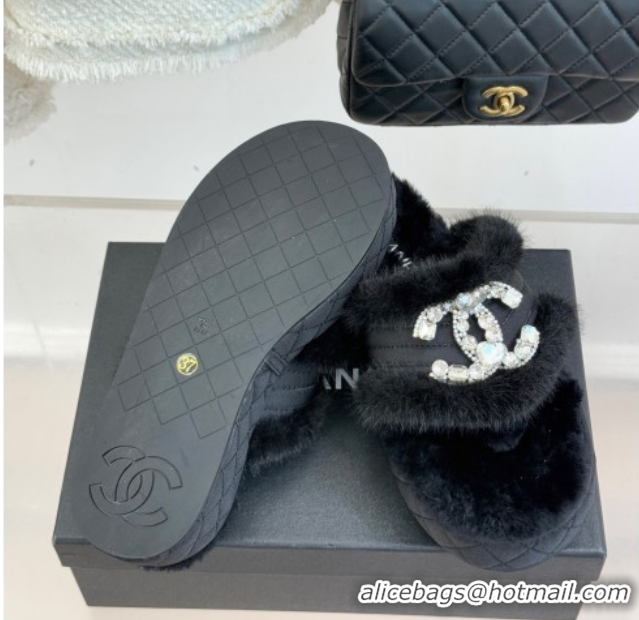 Durable Chanel Fabric and Wool Platform Slides Sandal with Strass CC Black 2025 CH110307 1103091