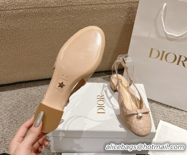 Shop Cheap Dior Ballet Slingback Pumps 3cm in Quilted Cannage Calfskin with Pearl Bow Nude 0822018