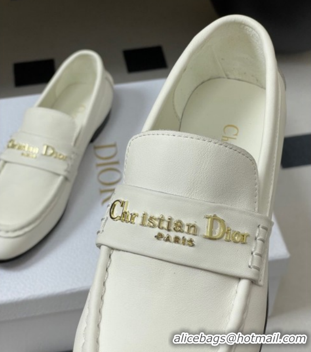 Top Design Dior Boy Flat Loafers in Supple Calfskin Leather White 1029079
