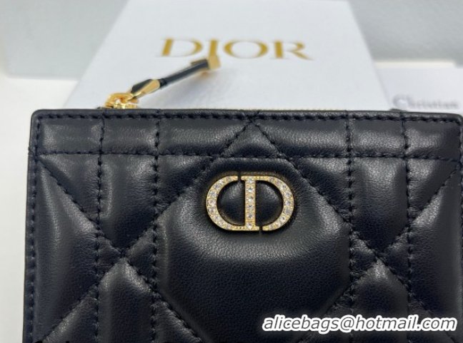 Shop Duplicate Dior Caro Dahlia Wallet with Crystals in Macrocannage Lambskin Leather Black 0127009 2026