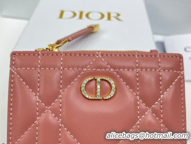 Shop Duplicate Dior Caro Dahlia Wallet with Crystals in Macrocannage Lambskin Leather Vintage Pink 0127002 2026