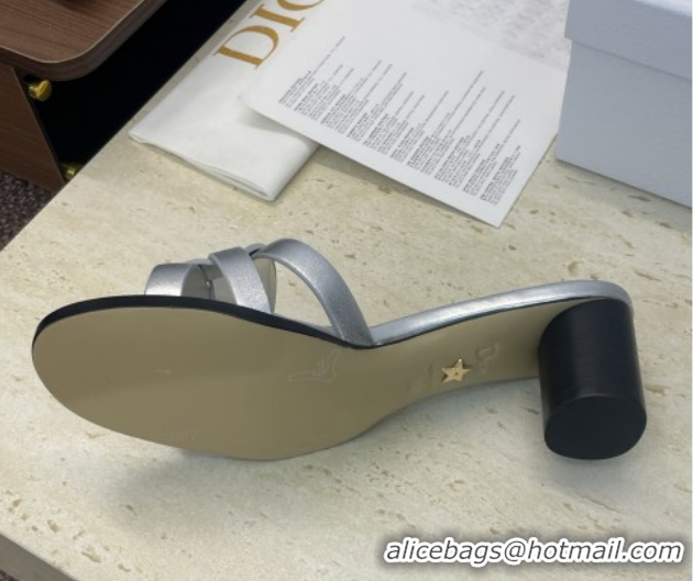 Your Position: Home > Shoes Plaza > Chrisitan Dior Shoes > Luxury Dior D-Club Heeled Slides Sandal 6cm in Calfskin Leather Silver DR121701 1217012