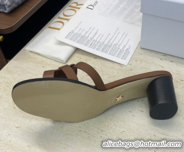 Shop Duplicate Dior D-Club Heeled Slides Sandal 6cm in Calfskin Leather Brown DR121701 1217013