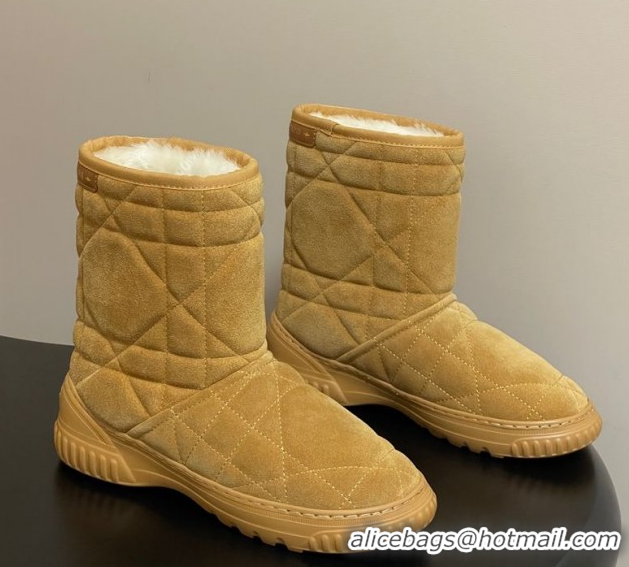 Shop Duplicate Dior DiorAlps Frost Ankle Boots in Cannage Suede and Wool Camel 1029005