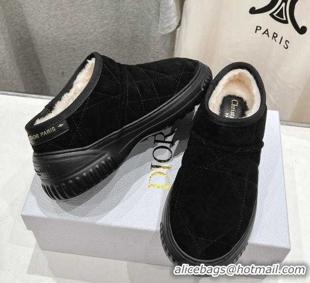 Popular Style Dior Frost Low Ankle Boots in Cannage Suede and Wool Black 1029006