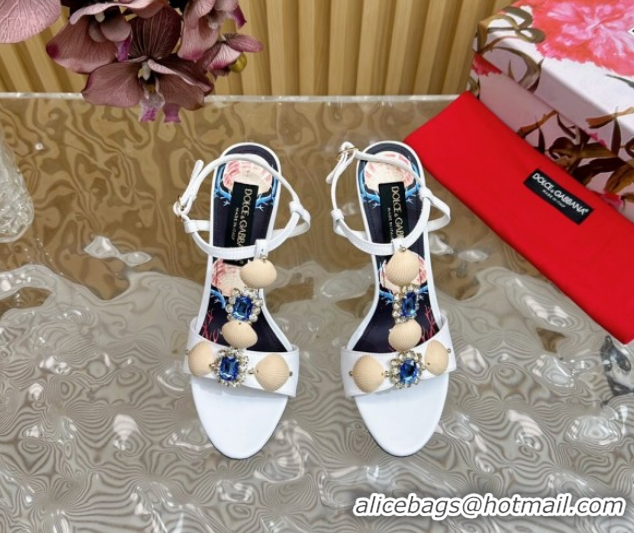 Shop Duplicate Dolce & Gabbana Calfskin Leather Heel Sandals 10.5cm with Stones and Shell White 1211069 2026