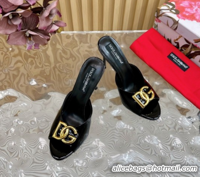 Shop Duplicate Dolce & Gabbana Patent Leather Heel Slides Sandal 10cm with DG Logo DG121103 Black 2026