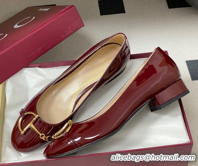 > Shoes Plaza > Gucci Shoes > Shop Duplicate Gucci Ballet Flats with Half Horsebit in Patent Leather Burgundy 1021037