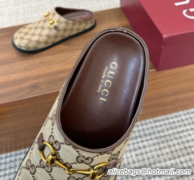 Durable Gucci GG Canvas Flat Mules with Horsebit Camel 1020025