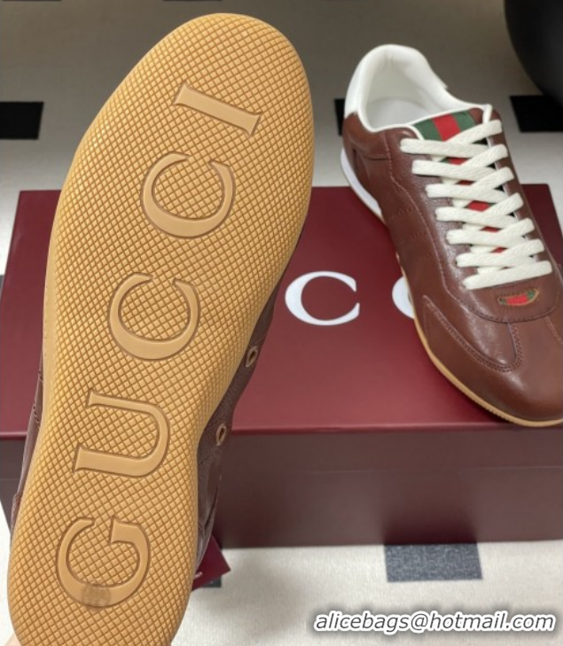 Top Design Gucci Shift Sneakers in Calf Leather Deep Brown 1218056 2026