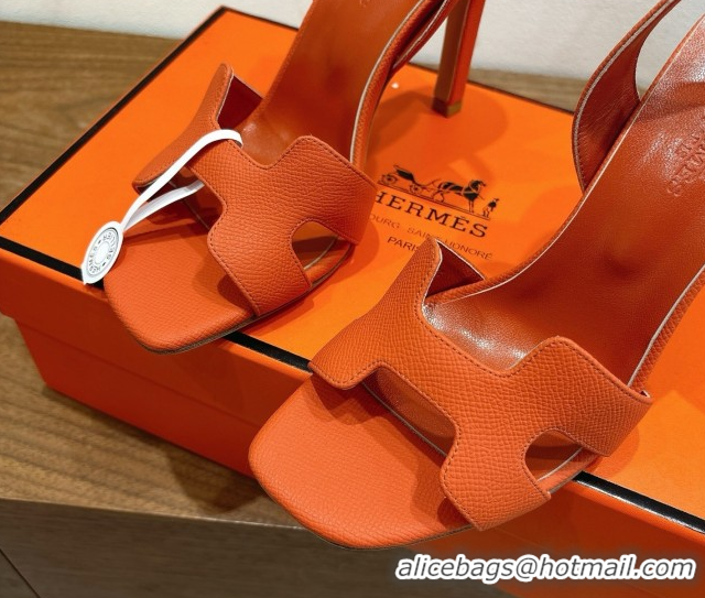 Shop Duplicate Hermes Eremite Heel Sandals 10cm in Grained Leather Orange2 H02275 1023149