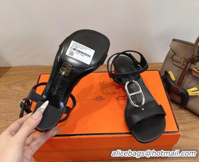 Best Product Hermes Marinella Heel Sandals 5cm in Calfskin Leather with Chaine d'Ancre Buckle 6030400 Black 2026