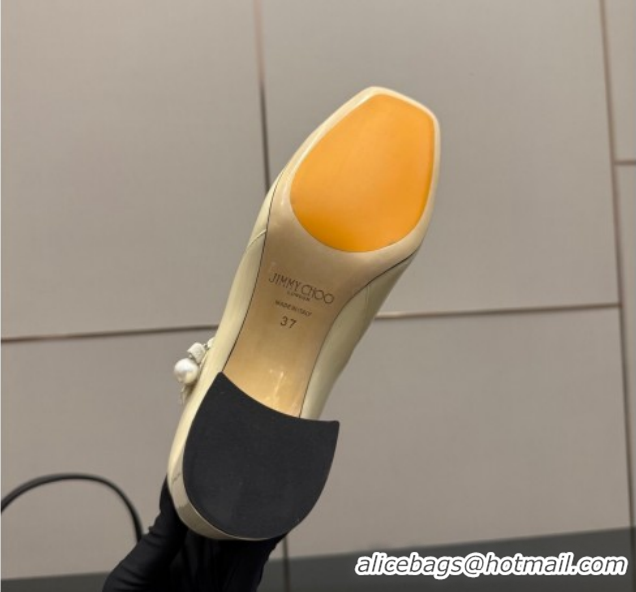 Most Popular Jimmy Choo Jenson Mary Janes Pump 6cm in Patent Leather with Pearls Bow White 1210067