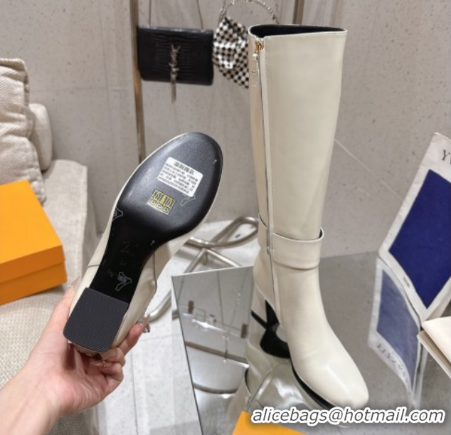 Shop Duplicate Louis Vuitton Midtown High Heel Boots 9.5cm in Calfskin Leather White 1AIUK0 1219079
