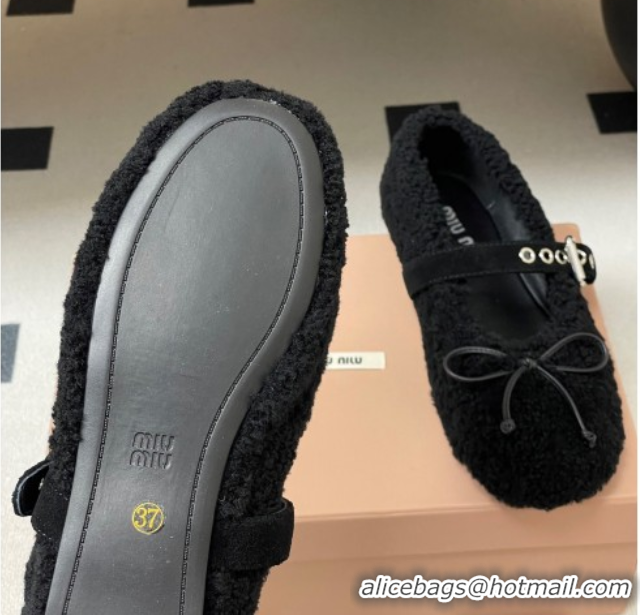 > Shoes Plaza > Miu Miu Shoes > Purchase Miu Miu Shearling Ballerinas Flat with Buckle Strap Black 5F272E 1025048 2025