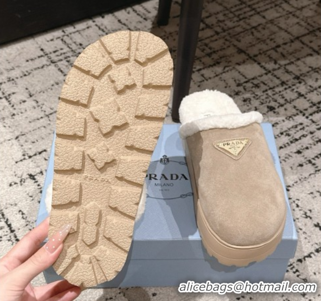 Hot Style Prada Suede and Shearling Platform Mules 4cm Taupe 2025 PR102702 1027023