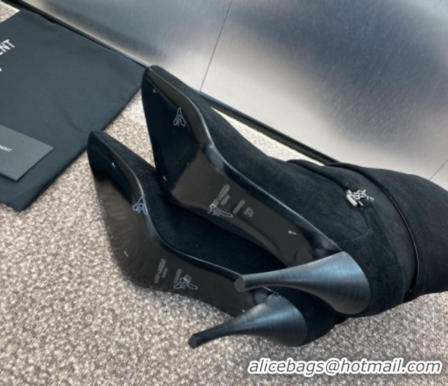 > Shoes Plaza > Yves Saint Laurent Shoes > Shop Duplicate Saint Laurent Niki Heel Ankle Boots 9.5cm with YSL Strap in Suede Black 0825080