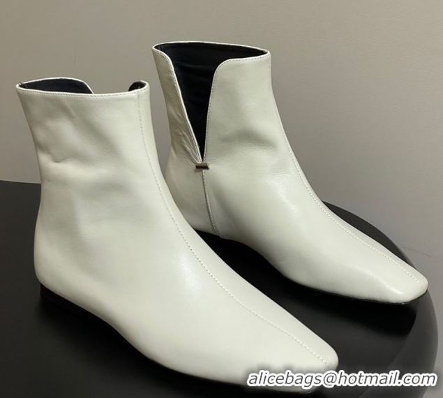 Shop Duplicate The Row Lambskin Leather Flat Ankle Boots TR102801 White 2025