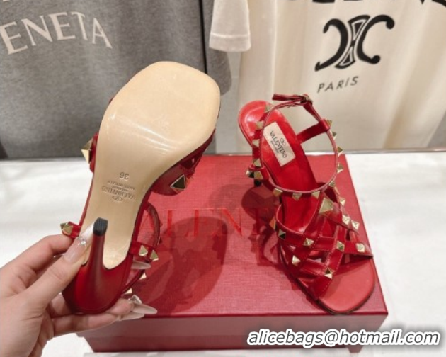 Luxurious Valentino Studdy Heel Sandals 9.5cm in Calfskin Leather Red 0224037