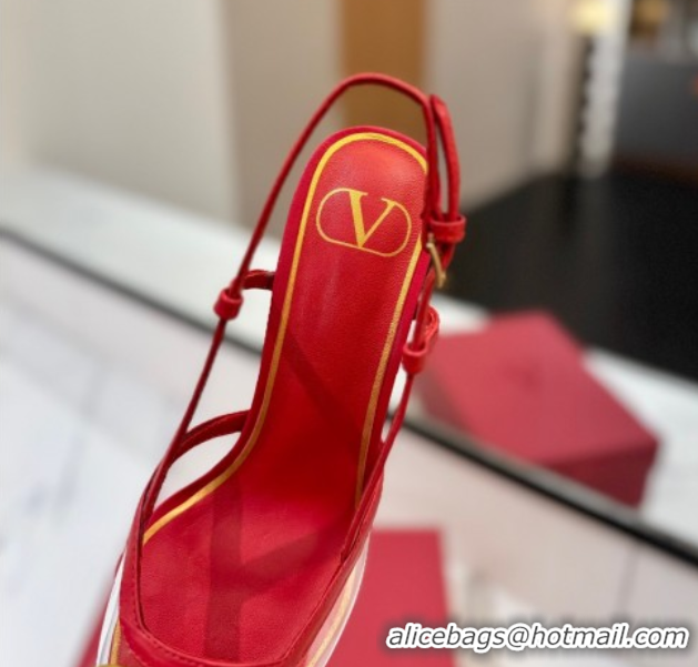 Good Quality Valentino VLogo Signature Slingback Pumps 8cm in PVC and Calfskin Red VA082105